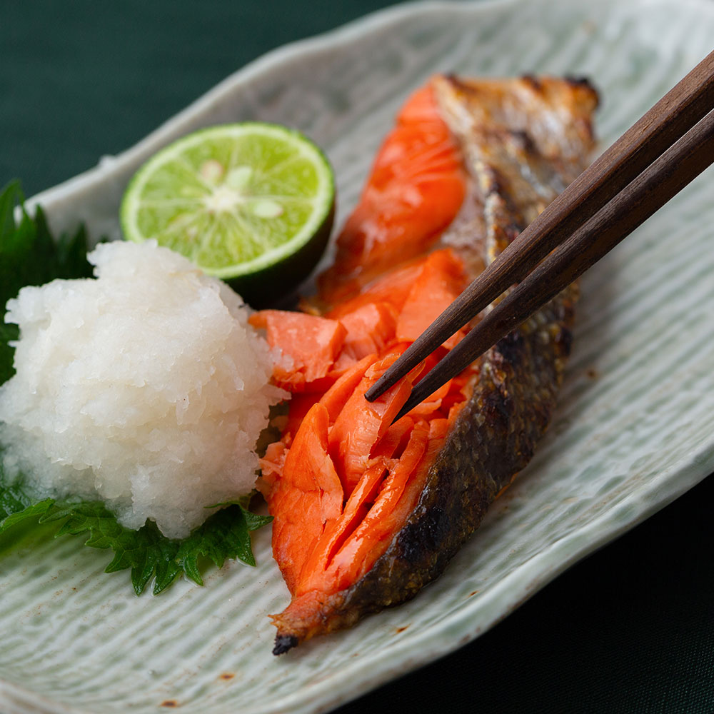 脂がのった人気の紅鮭を一枚ごと個別真空しました。お召し上がりになる分だけを冷蔵庫で自然解凍後、焼き魚としてご調理ください。
