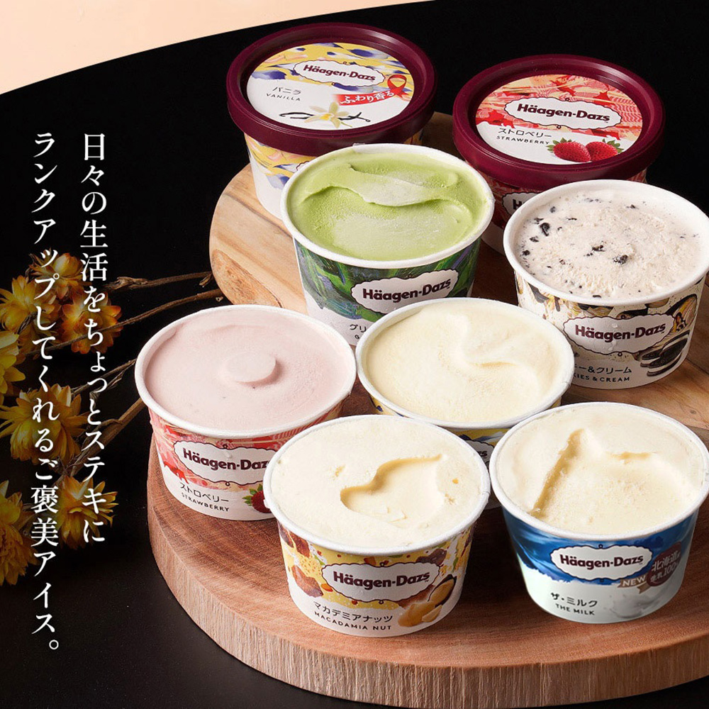 ■規格:ハーゲンダッツミニカップ各110ml(バニラ・ストロベリー×各2、グリーンティー、クッキー&クリーム、マカデミアナッツ、ザ・ミルク)