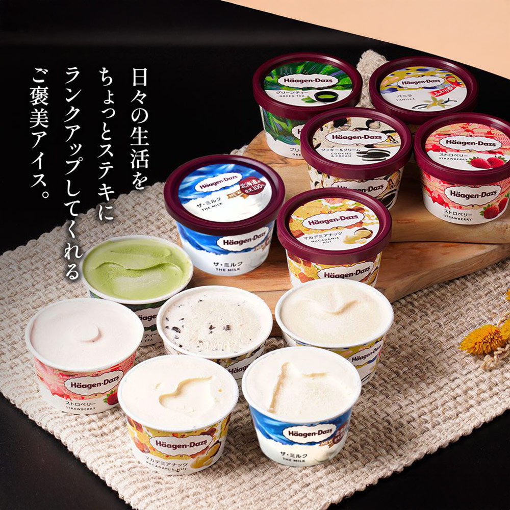 ■規格:ハーゲンダッツミニカップ各110ml(バニラ、ストロベリー、グリーンティー、クッキー&クリーム、マカデミアナッツ、ザ・ミルク×各2)