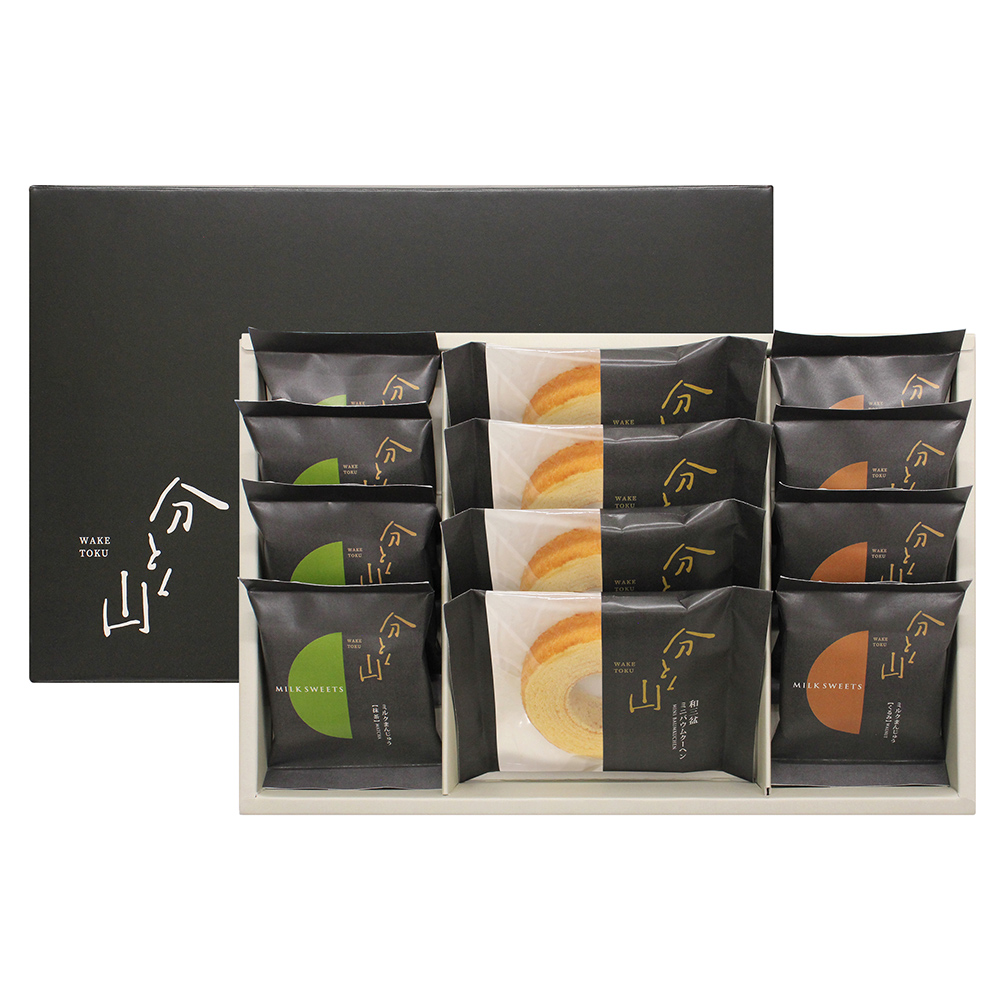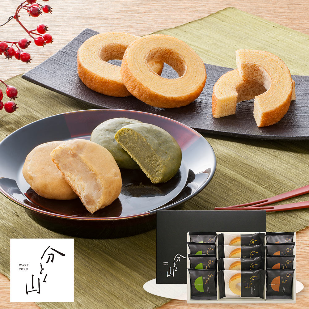 バウムクーヘンと、2種類のミルク饅頭を詰合せました。日本料理の名店「分とく山」監修の和の焼き菓子ギフトです。
