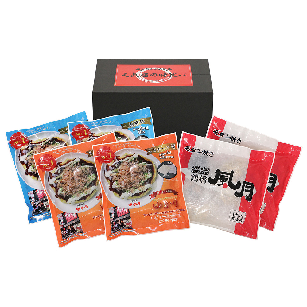大阪で人気のお好み焼き店「ゆかり」と「鶴橋風月」のお好み焼き味比べセットです。