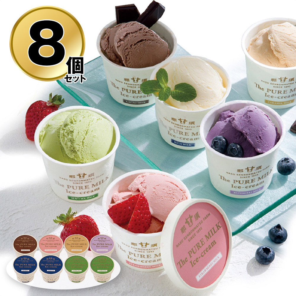 わが街とくさんネット TOP ≫ スイーツ・パン・朝食 ≫ 【お歳暮2025】千本松牧場 The PURE MILK アイスクリーム 8個セット P108011 9828-029 スイーツ アイス【送料込み】【お届け不可地域:北海道・沖縄・離島】