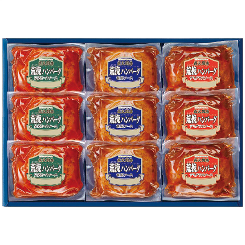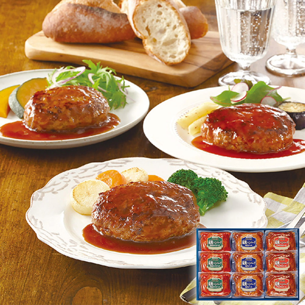 ■規格:荒挽ハンバーグ(完熟トマトソース・和風ソース・デミグラスソース各3個・各120g)