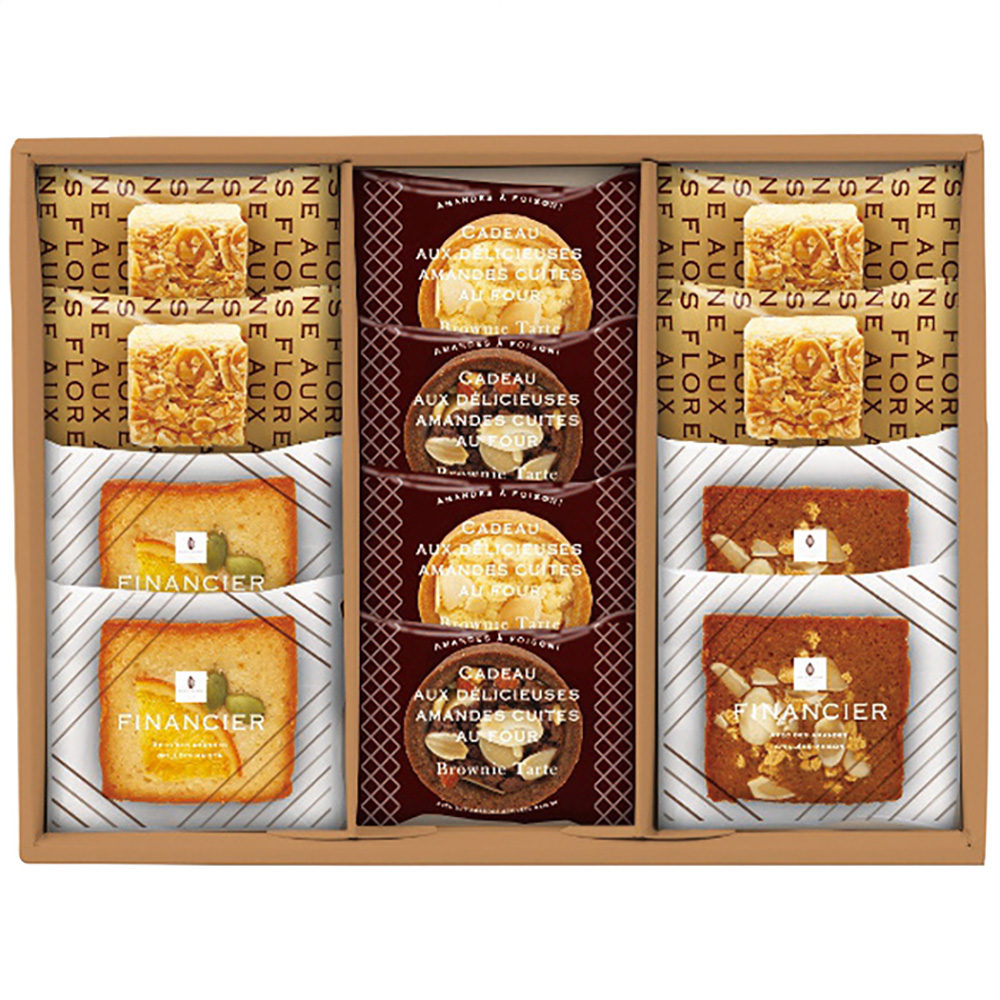 ■規格:フィナンシェ(オレンジ・キャラメルアーモンド)・タルト(ブラウニー・ホワイトブラウニー各2個)・フロランタン4個
