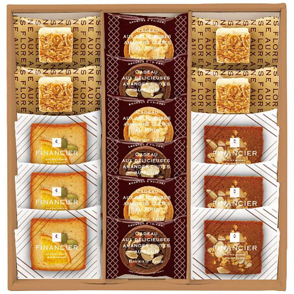 ■規格:フィナンシェ(オレンジ・キャラメルアーモンド)・タルト(ブラウニー・ホワイトブラウニー)各3個・フロランタン4個
