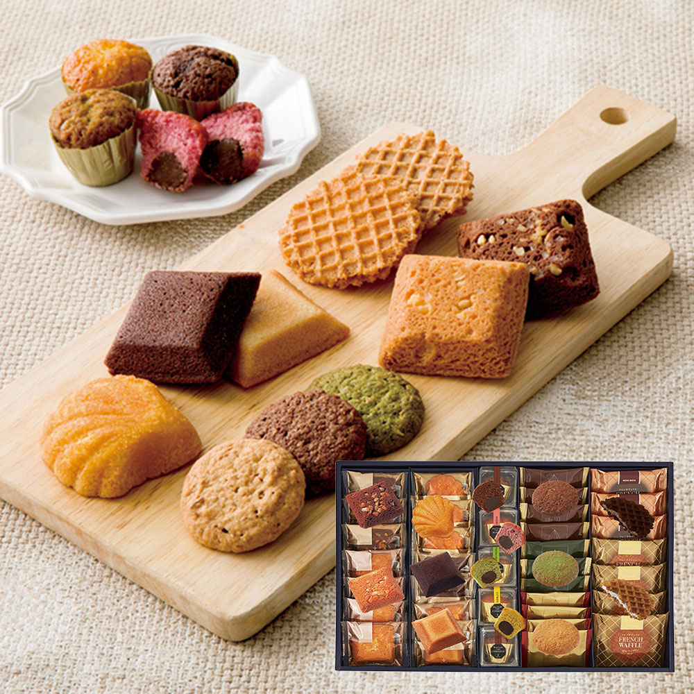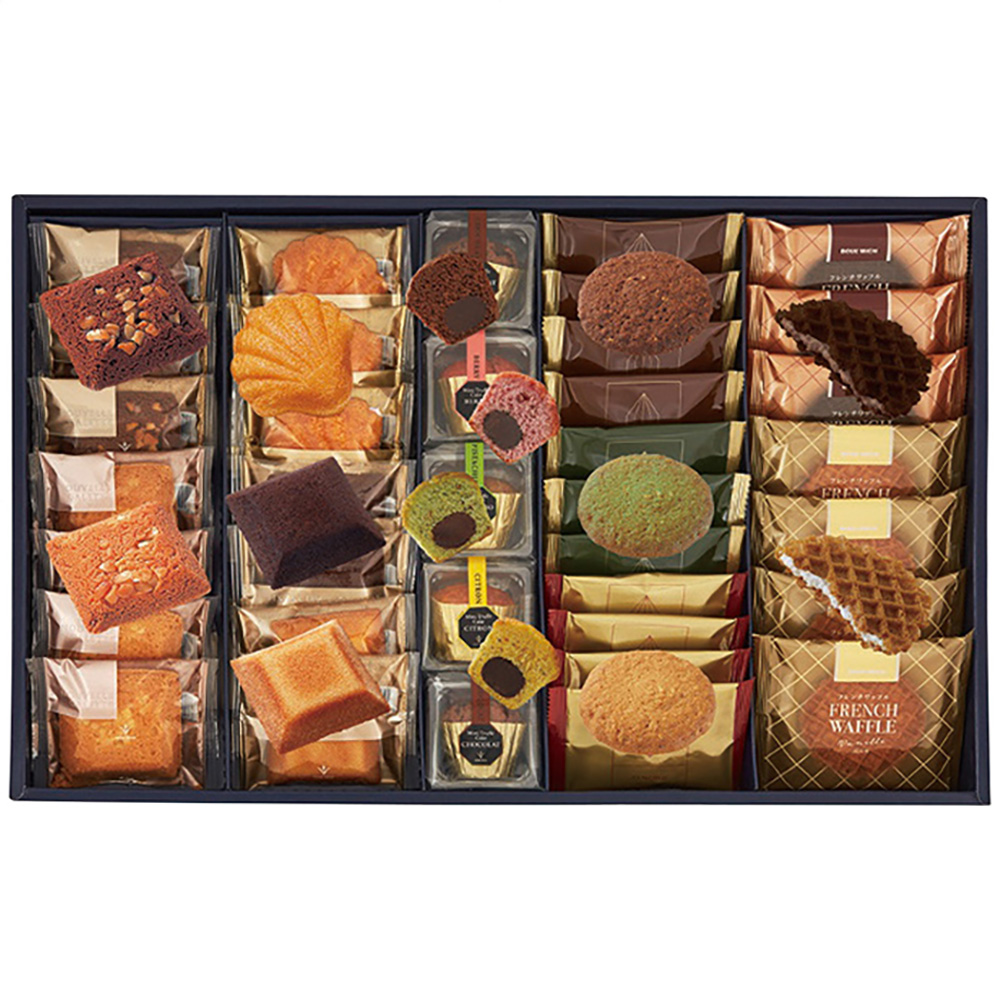 ■規格:マドレーヌ3個・フィナンシェ・フィナンシェショコラ各2個・ヌーヴェルガレット(バニラ4個・チョコ3個)・ミニトリュフケーキ2個・ミニトリュフケーキ(ベリー・ピスタチオ・レモン各1個)・フレンチワッフル(バニラ4個・チョコ3個)・ディアマンド(アーモンド・チョコアーモンド各4個・抹茶アーモンド3個)