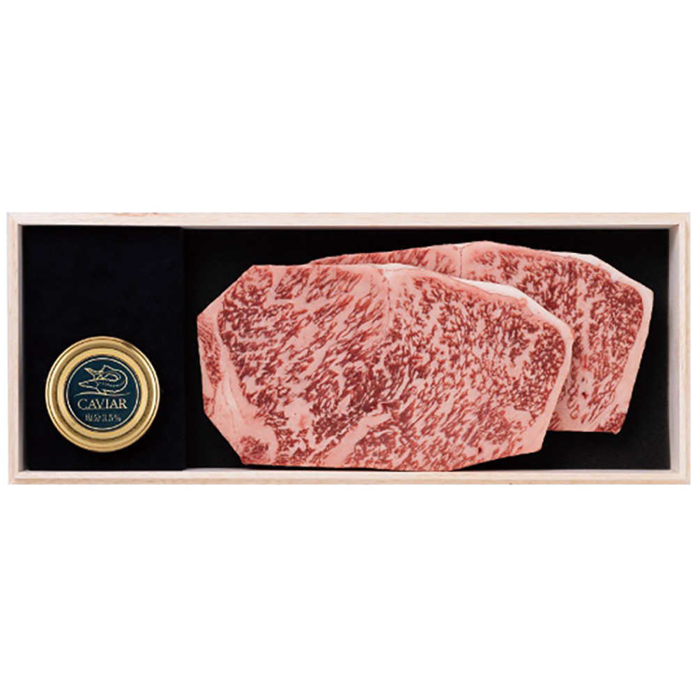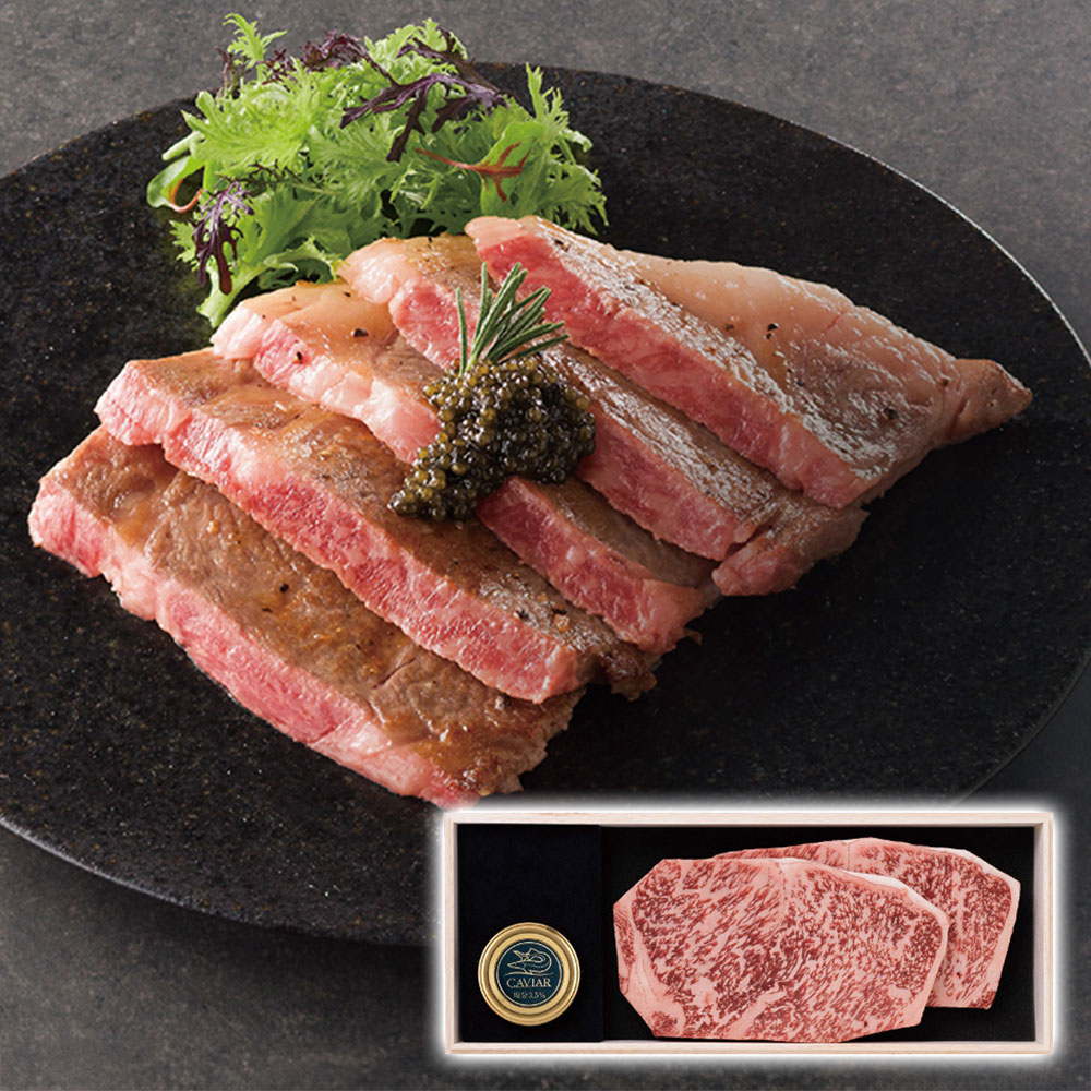 ■規格:新見フレッシュキャビア(塩分3.5%)15g×1瓶・千屋牛サーロインステーキ約200g×2枚