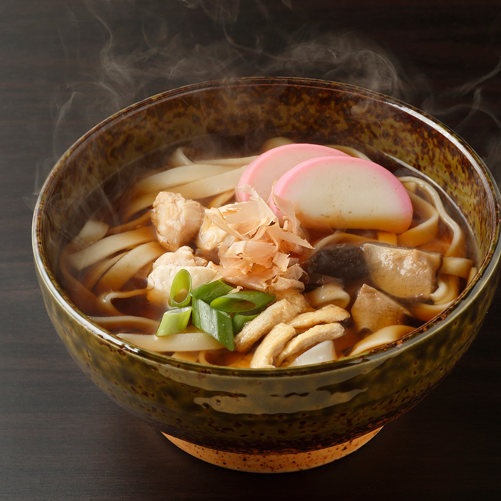 きしめんは温・冷でお召し上がりください。みそ煮込うどん、カレーうどんは?とスープを直接煮込んでください。
