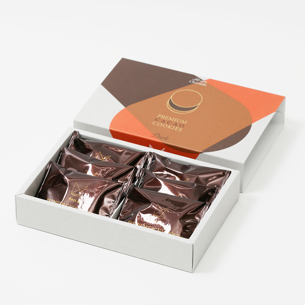 厚みのあるチョコレートをラングドシャ生地で挟み込みました。「ダーク」は、インドネシア産カカオの重厚感と、フルーティーで爽快な酸味を同時に味わえるフレーバー。カカオ本来の奥深い味わいをお楽しみください。