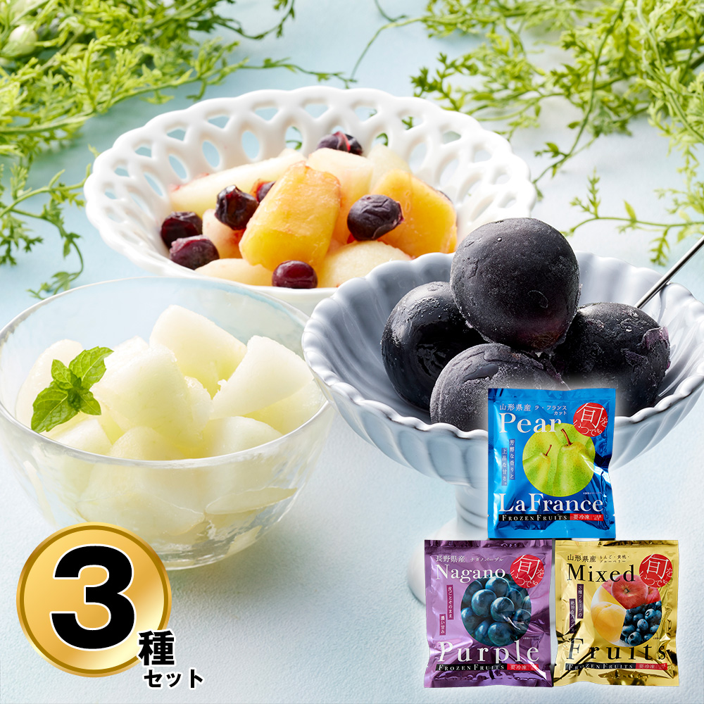 凍眠フルーツ 3種セット(ラ・フランス、ナガノパープル、ミックスフルーツ) フルーツ 果物 りんご 桃 ブルーベリー ブドウ 洋梨【送料込み】【二重包装不可】【お届け不可地域:離島】