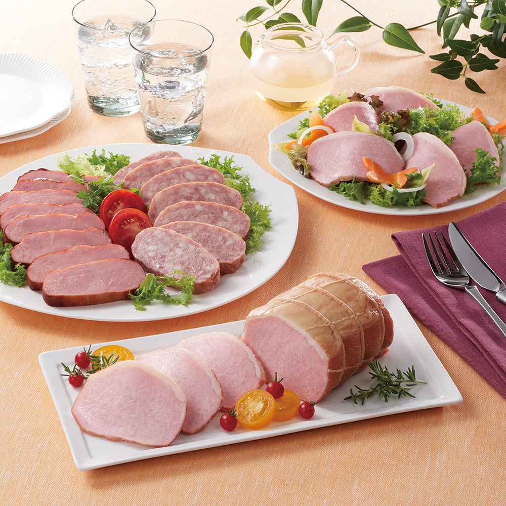 ■規格:特選ロースハム360g 焼豚二段加熱仕立て160g 特選燻しあらびきヴルスト160g
