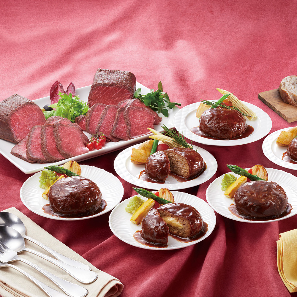■規格:低温真空調理ローストビーフ(もも)200g 低温真空調理ローストビーフ(もも)200g トリュフ入りグレイビーソース30g トリュフ入りグレイビーソース30g デミグラスソースハンバーグ120g デミグラスソースハンバーグ120g デミグラスソースハンバーグ120g デミグラスソースチーズ入りハンバーグ120g デミグラスソースチーズ入りハンバーグ120g デミグラスソースチーズ入りハンバーグ120g