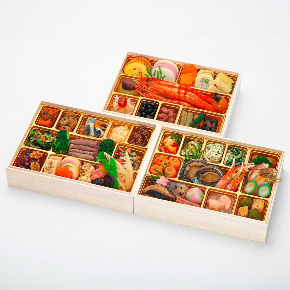 和と洋を多彩に織り込んだぜいたくな三段重のおせちです。