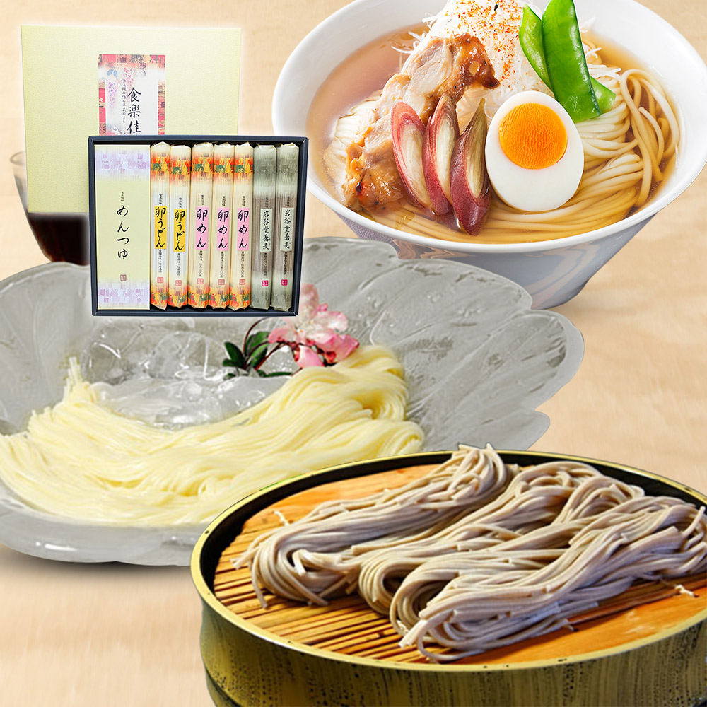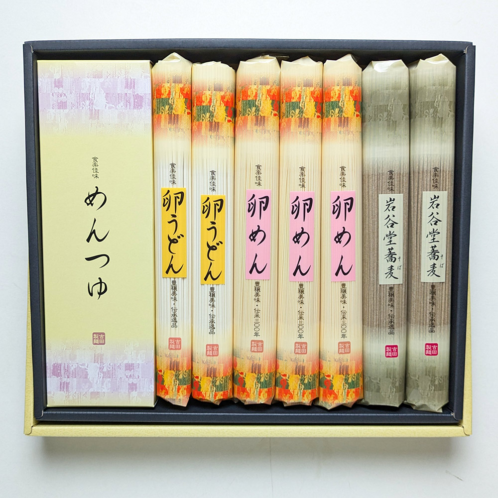 ■規格:卵めん200g×3、うどん200g×2、そば180g×2、つゆ48g×7