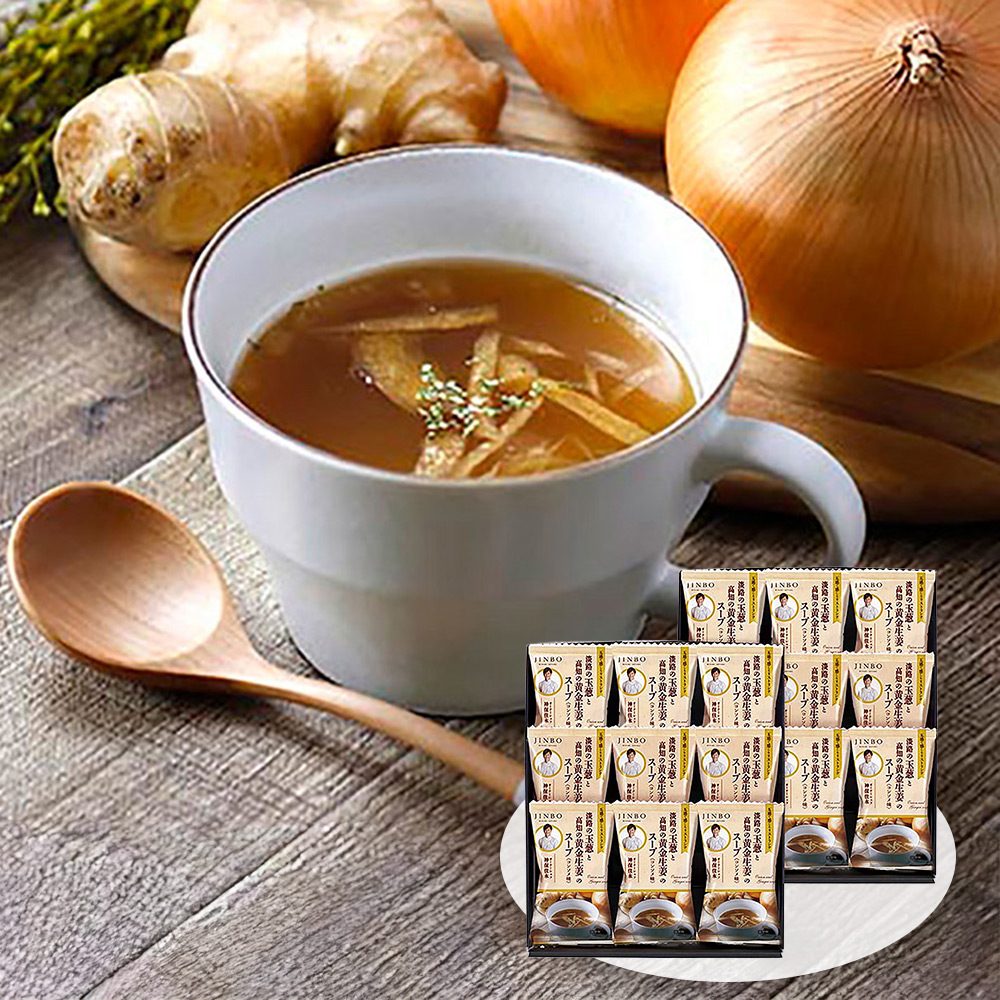 2022年4月末 東京南青山にオープンした、“五感で感じるリストランテ”「JINBO MINAMI AOYAMA」オーナーシェフの神保佳永(1977年茨城県日立市出身)は、江戸野菜をイタリアンに取り入れたことで注目を集め、野菜の魔術師の異名を持つ。開店後1年未満で、50年以上の歴史があるレストランガイドブック「ゴ・エ・ミヨ2023」にて2トックの評価を獲得。「JINBO MINAMI AOYAMA」の神保シェフが監修した、野菜の旨味を詰め込んだフリーズドライスープです。オリーブオイルでソテーした淡路島産玉ねぎの甘みと、高知県産黄金生姜の程よい辛さがくせになる美味しさです。