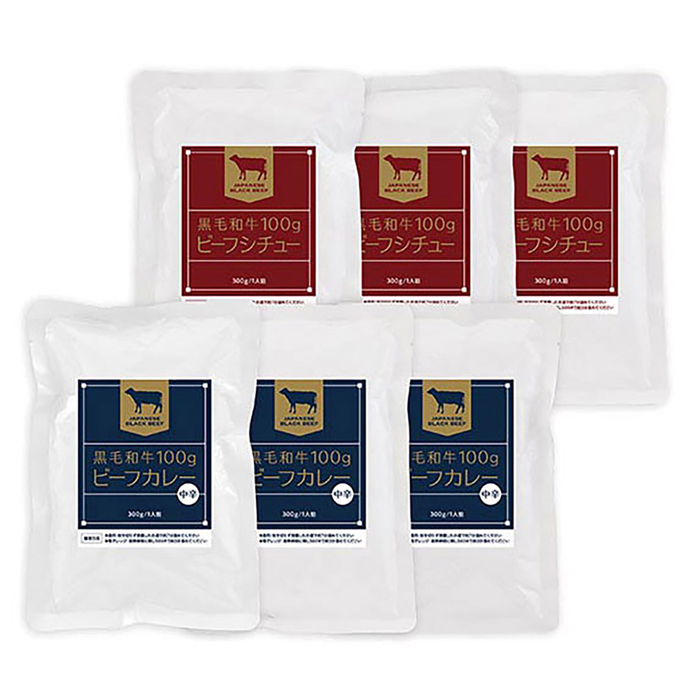 ■規格:黒毛和牛ビーフカレー(中辛口)・黒毛和牛ビーフシチュー 各300g×3食(レトルトパウチ)