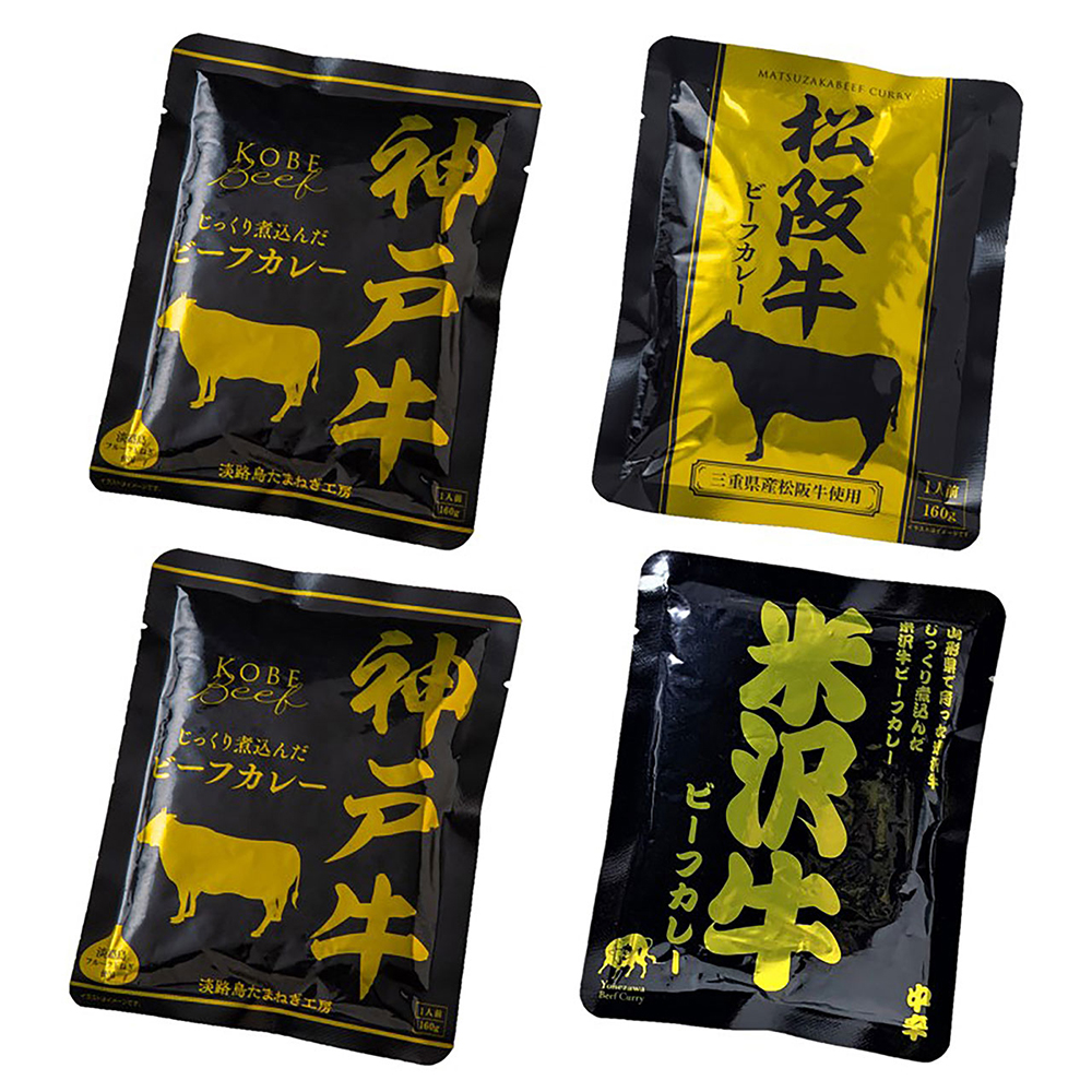■規格:ビーフカレー(中辛)160g×4(神戸牛×2、松阪牛・米沢牛×各1)