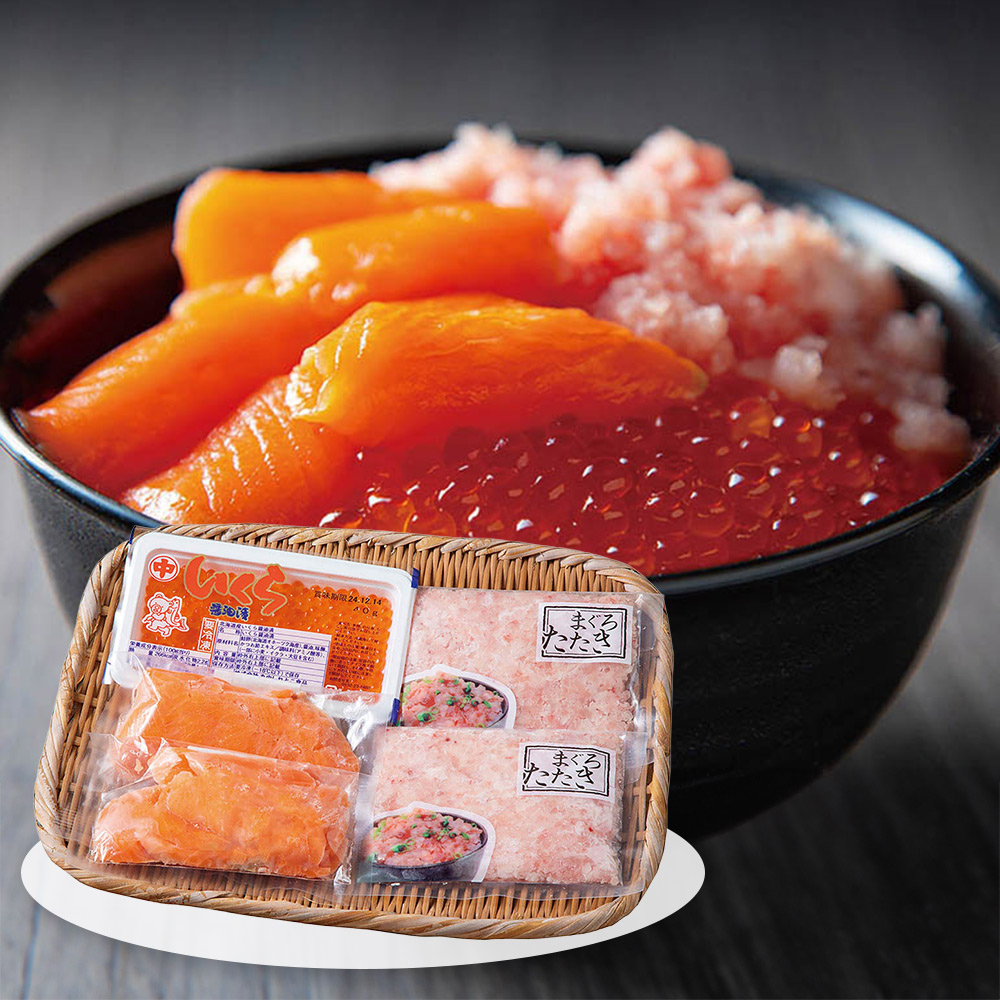 ■規格:北海道産いくら?油漬け40g×1、サーモン切落し80g・まぐろたたき80g×各2