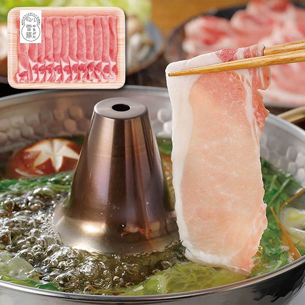 やまがた雪豚。それは、美味な豚肉の産地として名高い山形から誕生した、山形が誇るブランド三元豚「やまがた雪豚」。やまがた雪豚は美しい自然の懐で、トウモロコシや大豆粕(遺伝子組換えでない)、飼料米等から成る良質な飼料で育てられます。名前は「その上質な脂が雪のように白く、極上の口溶けをくれる」ことに由来します。やまがた雪豚のロース肉の最大の特徴である上質な脂を味わっていただくためしゃぶしゃぶ用でお届けいたします。その旨味、存分にご賞味ください。