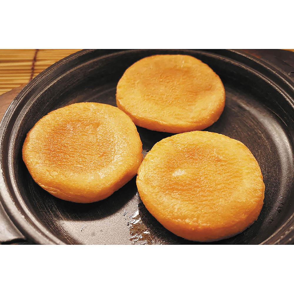 北海道産のじゃがいもを使用し、いももち(いもだんご)と呼ばれ、北海道では昔からある定番メニューで、砂糖醤油やケチャップにつけて食べるとさらにおいしいです。