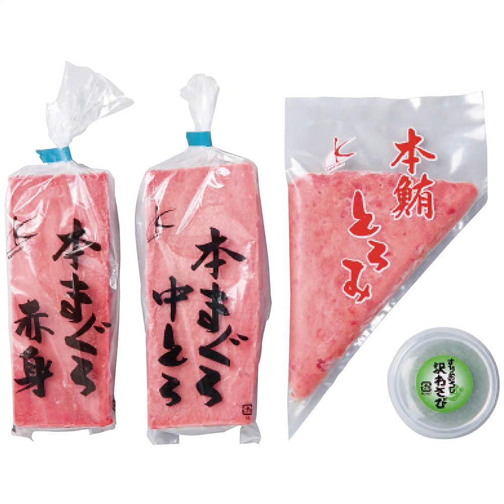 ■規格:本鮪赤身約180g・本鮪中トロ約180g・本鮪とろみ100g・わさび25g各1個