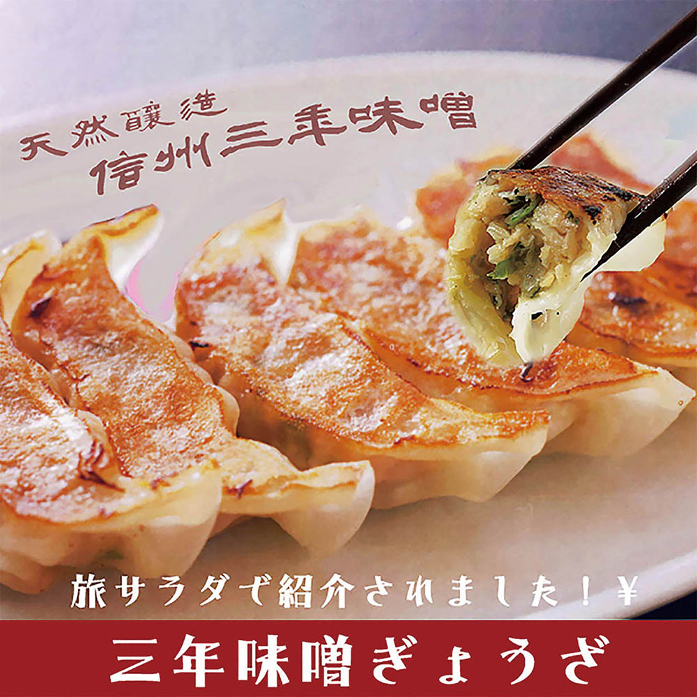 モチモチ&ジューシー!タレがいらない三年味噌を練りこんだ餃子です。