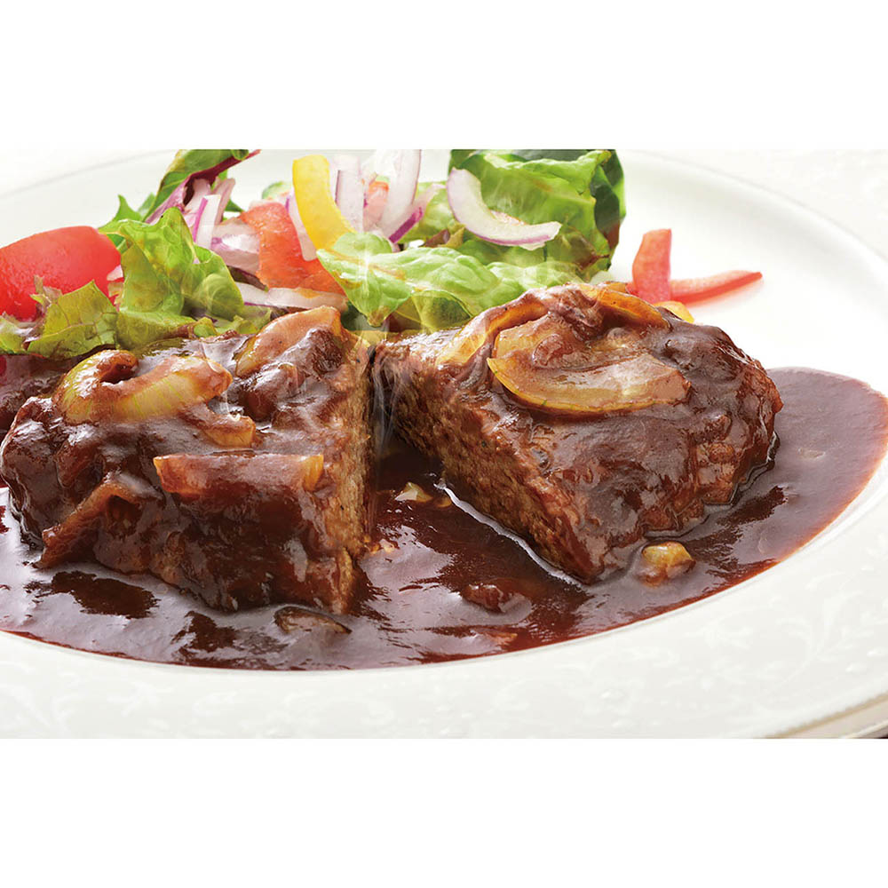 米沢牛と国産豚を合挽きにした、お肉の旨みをお楽しみいただけるハンバーグです。デミグラスソースはグレイビーソースやマッシュルームペーストを使用し、深いコクと濃厚な味わいに仕上げました。湯煎でお召し上がりいただけます。