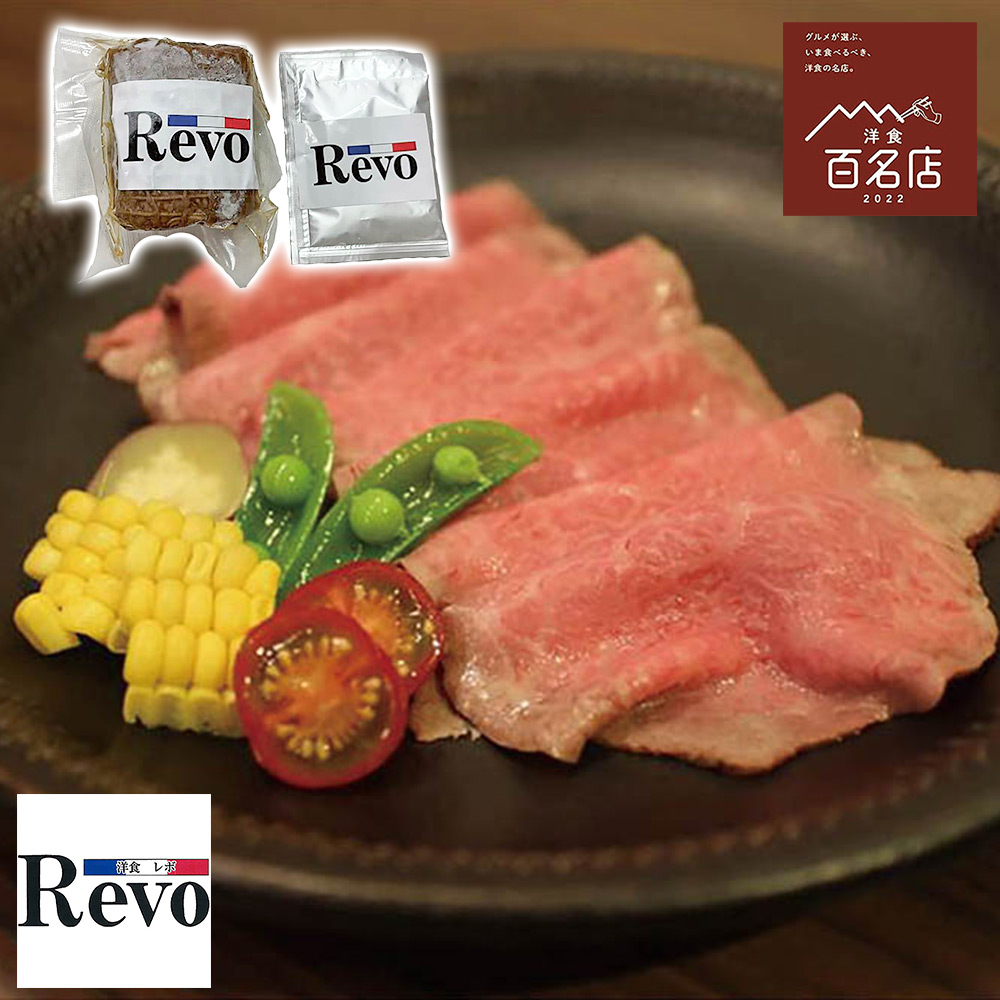 大阪に3店舗お店を構え黒毛和牛一頭買いする洋食屋さん『Revo』の名物ローストビーフ。来店のお客様を唸らせるローストビーフはオーナーシェフが厳選した上質の黒毛和牛とこだわりの素材で作り上げた逸品。牛肉はオーナーの目利きによる厳選のA4、A5黒毛和牛のみ!!