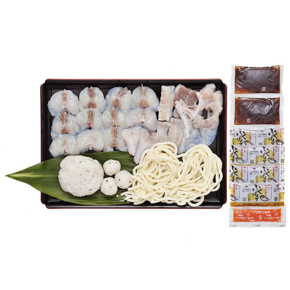 ■規格:まふくちり身・アラ500g、とらふく入りつみれ200g、とらふく入りうどん250gふく鍋だし45g×2、ポン酢35g×4モミジオロシ16g