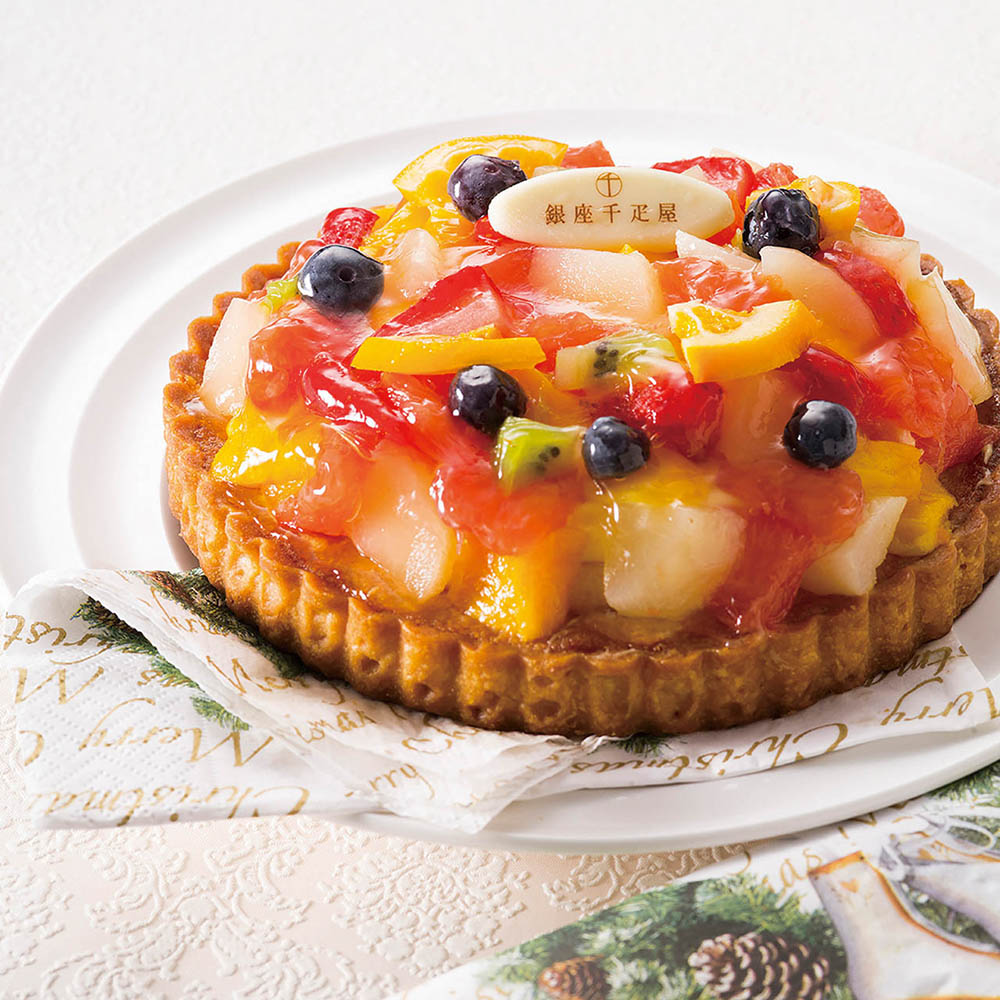 サクッとしたタルト生地と、アーモンドプードルで焼き上げた生地に、カスタード風味クリームと、色とりどりのフルーツをトッピングした、銀座千疋屋オリジナルのフルーツタルトです。