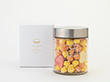 看板商品のマカロンの魅力をもっと手軽に味わってもらいたいという想いから創作したオリジナル商品が、マカロンボーロです。毎年大人気のホワイトデー限定マカロンボーロです。限定発売で大好評だったハニーとカラメルのマカロンボーロに相性抜群のホワイトチョコをかけました。トッピングのチョコモチーフはキラキラのアラザンをトッピングした3色のチョコが可愛らしさを演出します。
