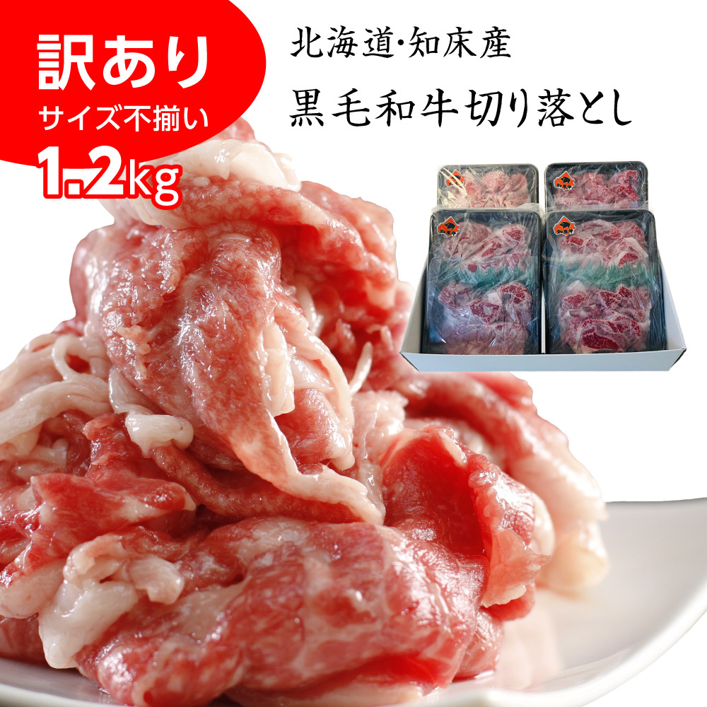 訳あり サイズ不揃い 北海道産黒毛和牛 知床牛切り落とし 1.2kg(300g×4) 牛肉 和牛【送料込み】【二重包装不可】【お届け不可地域:離島】