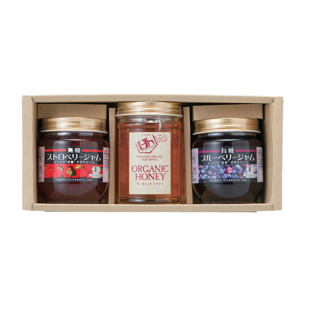 低温で丁寧に仕上げた有機ジャムと有機規定をクリアしたオーガニック蜂蜜を詰め合わせました。