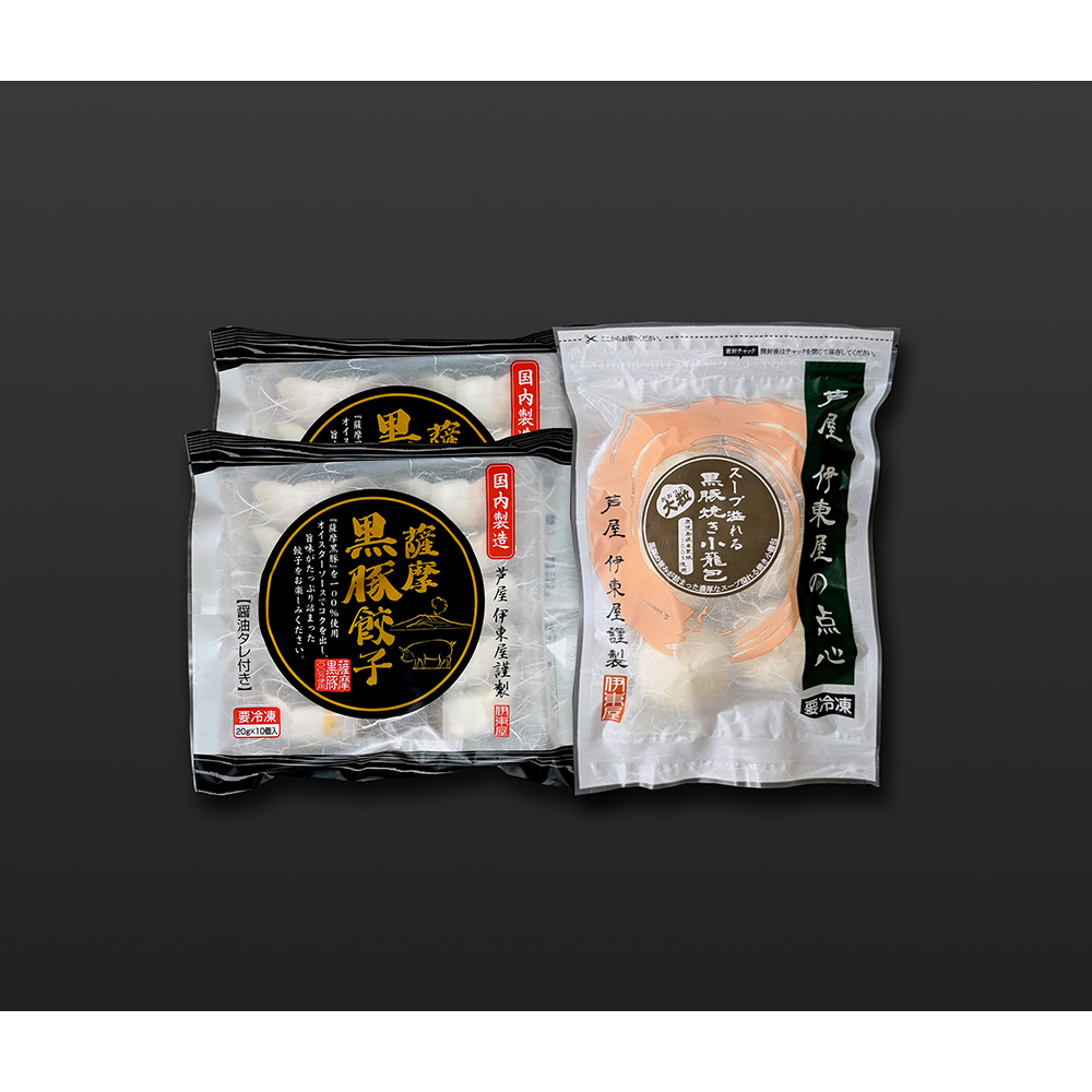 兵庫 芦屋 伊東屋謹製 薩摩黒豚餃子と大粒・黒豚焼き小籠包セット 計5 ぎょうざ【送料込み】【二重包装不可】【お届け不可地域:離島】