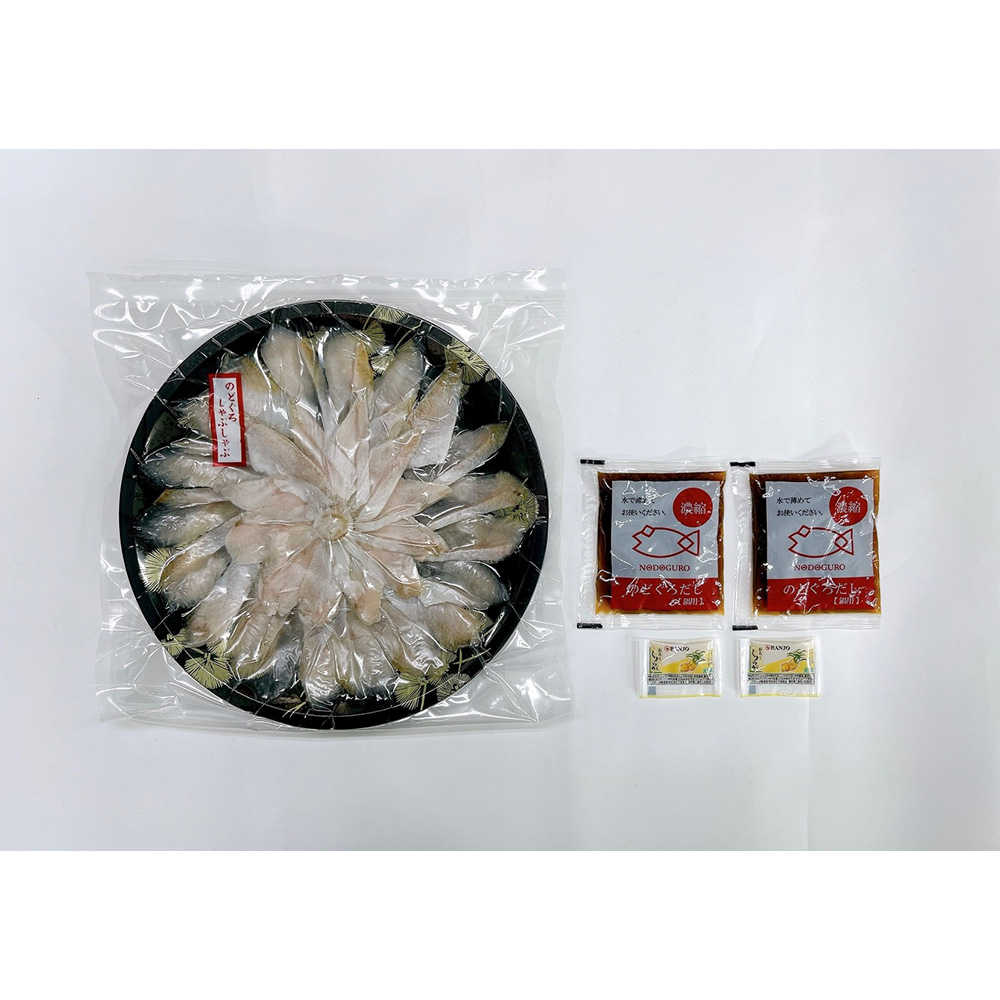 のどぐろしゃぶしゃぶのセットです。添付のオリジナルの鍋だしは、のどぐろから旨みを抽出しています。