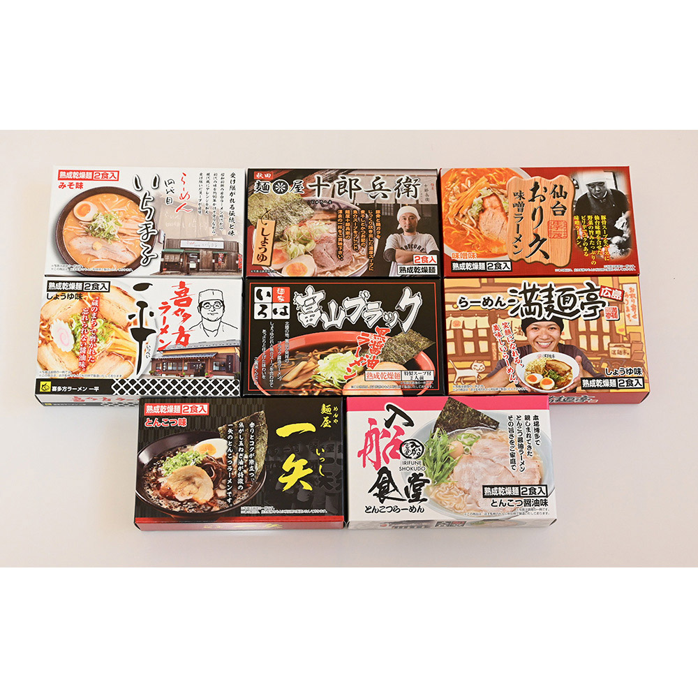 ■規格:札幌「いちまる」醤油味(麺70g×2、スープ50g×2)、秋田「十郎兵衛」醤油味(麺70g×2、スープ42g×2)、仙台「おり久」辛みそ味(麺70g×2、スープ35g×2)、喜多方「一平」醤油味(麺70g×2、スープ40g×2)、富山ブラック「麺屋いろは」醤油味(麺70g×2、スープ47g×2)、広島「満麺亭」醤油味(麺70g×2、スープ45g×2)、博多「入船食堂」とんこつ味(麺70g×2、スープ50g×2)、博多中洲「一矢」とんこつ味(麺70g×2、スープ32g×2、調味油6g×2)×各1