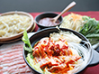 ■規格:オリーブ豚チゲ鍋350g、ゆでうどん200g×2、にんにく3g×2、鷹の爪