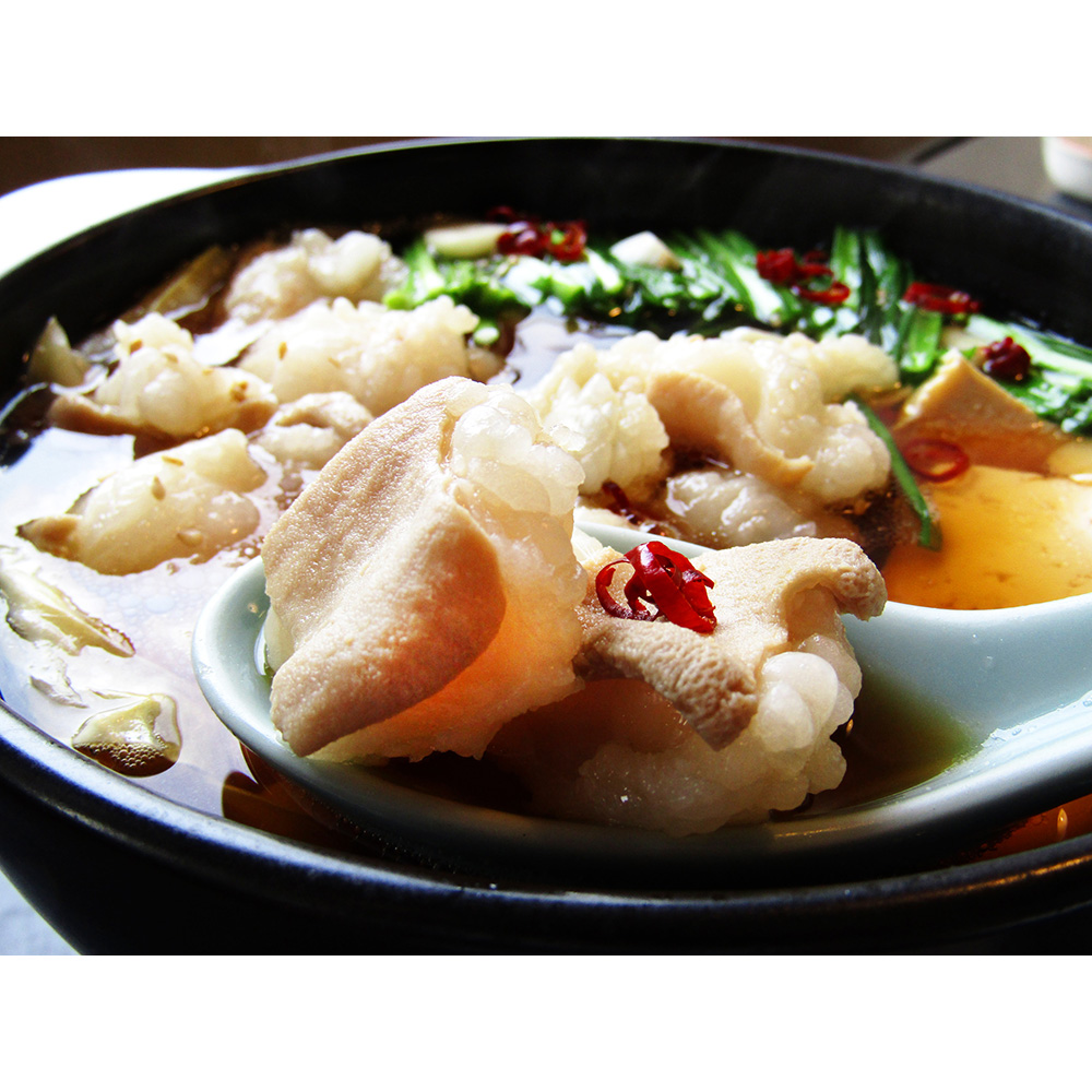 ホルモンは国産牛小腸100%。大ぶりカットで煮込んでも圧巻のサイズ感で、食べ応え抜群。ホルモンから染み出る旨みととろける脂で煮込む野菜は驚きの美味しさです。香川の老舗醤油店の「鎌田醤油」の麺つゆでより一層もつの甘味と旨みが引き立つ絶品の讃岐もつ鍋をぜひご家庭で味わってください。