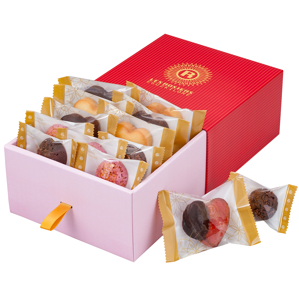 ■規格:チョコ掛けハートフィナンシェ×1、ハートフィナンシェ(ショコラ・プレーン×各3)、クランチチョコレート(ミルク・ストロベリー×各3)(計13)