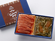 ピリッとした辛さの中にも味わい深い辛子明太子と数の子をたっぷりと使い昆布・いかを特製醤油ダレにじっくりと漬け込んだ豊な風味と食感の松前漬けのセットです。