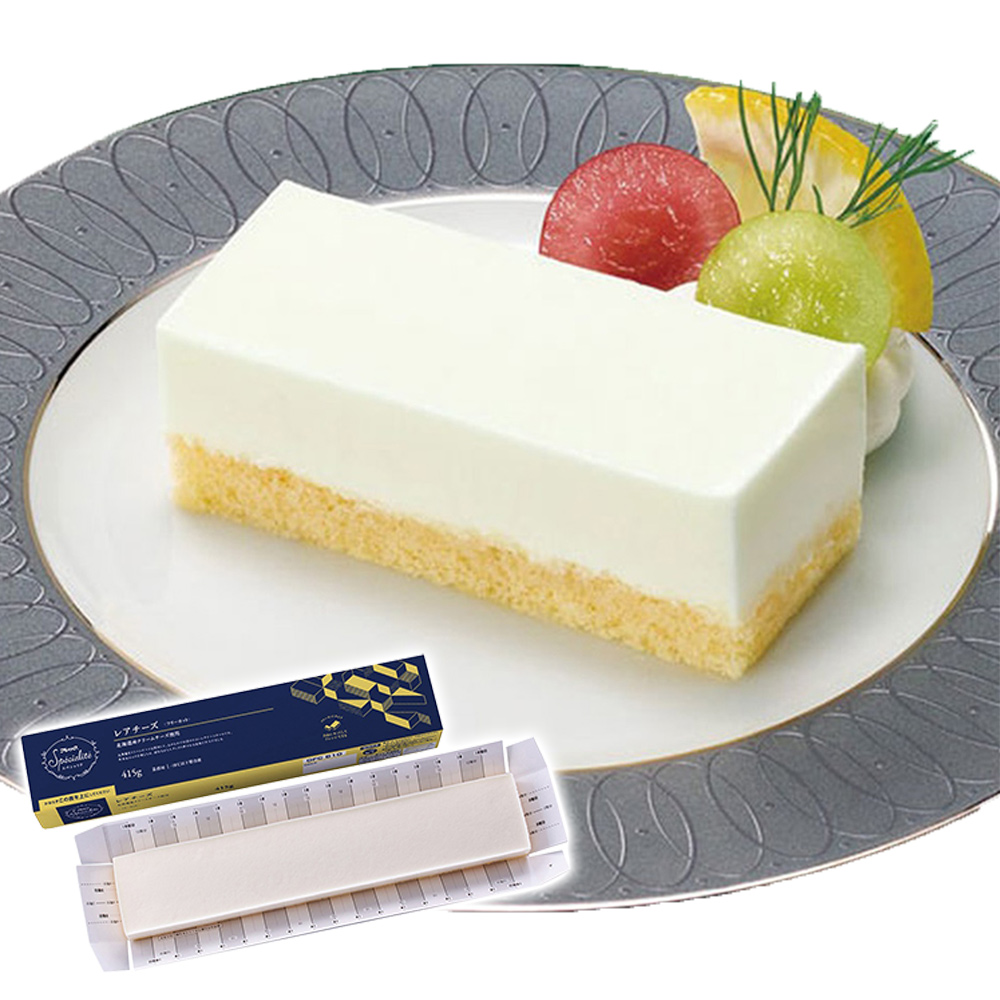 北海道産の原料にこだわったなめらか口溶けの長方形タイプのレアチーズケーキです。