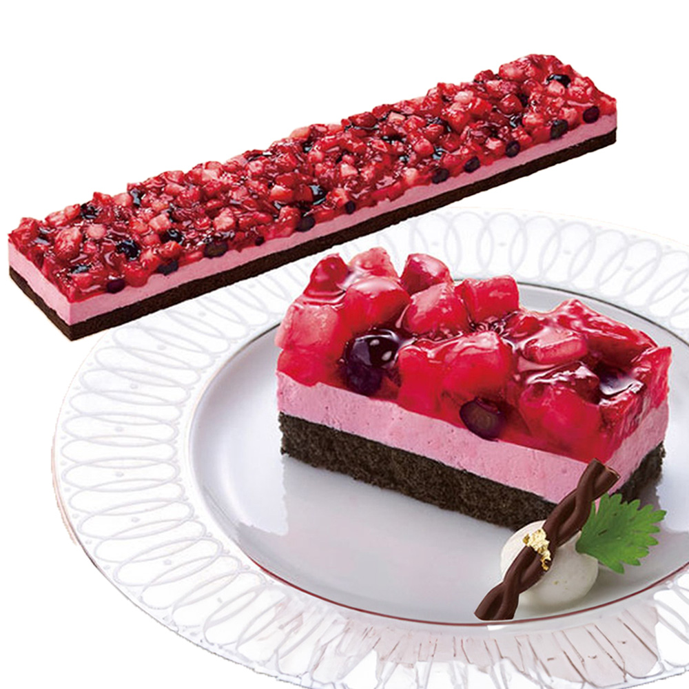 産地にこだわったいちごとブルーベリーをふんだんに敷きつめた贅沢な長方形タイプのフルーツケーキです。