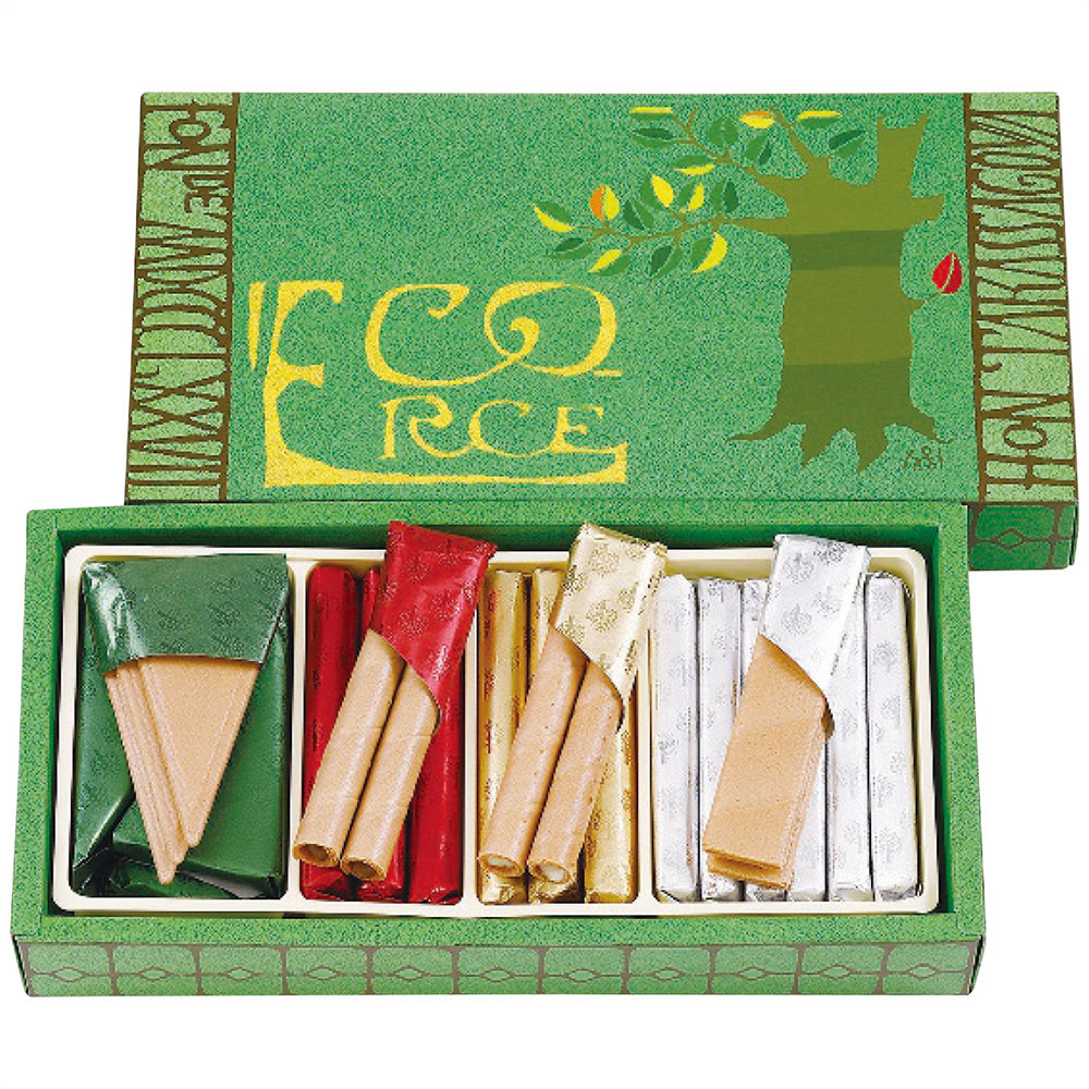 ■規格:エコルセ三角4包(12枚)・短冊6包(12枚)・丸型(ミルクチョコレート・ホワイトチョコレート)各3包(各6本)