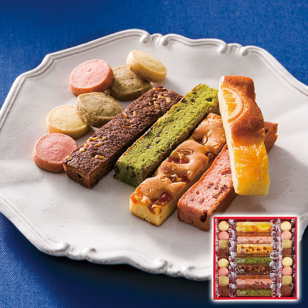 ■規格:ケーキ(オレンジ・キャラメルアップル各1個・ミックスベリー・抹茶ショコラ各2個)・ニューヨークブラウニー1個・クッキー(ショコラ・ストロベリー・アールグレイ・レモン各4個)
