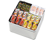 海苔巻きとえび焼もちとかき餅4種(醤油・七味・サラダ・うす醤油)をすべて個包装にした国産もち米100%使用の米菓の詰合せ商品です。缶入りとなっております。
