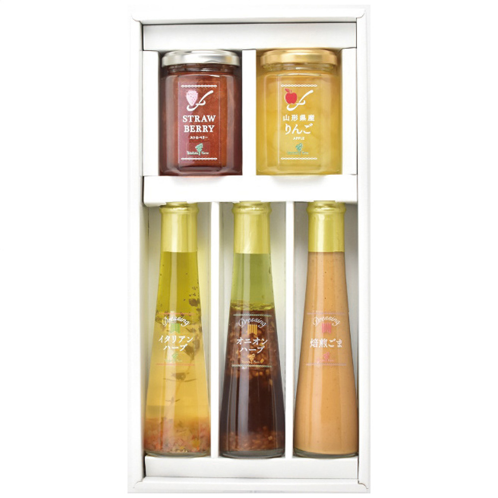 ■規格:ジャム145g(ストロベリー・りんご各1個)・ドレッシング122ml(イタリアンハーブ・オニオンハーブ・焙煎ごま各1本)