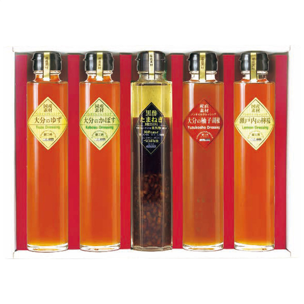 ■規格:ノンオイルドレッシング200ml(大分のかぼす・大分のゆず・大分の柚子胡椒・瀬戸内の檸檬)・黒酢たまねぎドレッシング200ml各1本