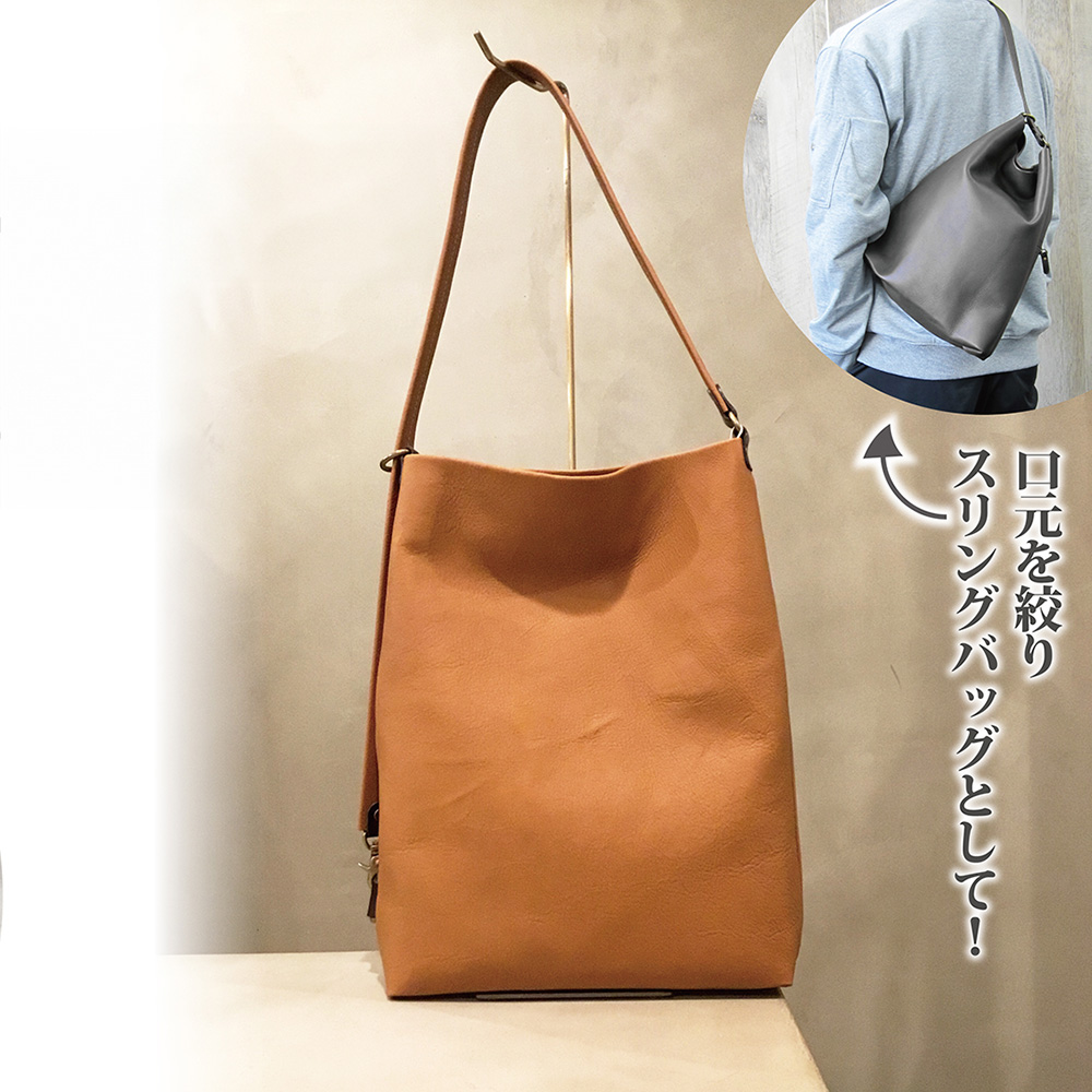 alto. Hシボプレス 縦型3wayトートショルダー AKEB-3009 キャメル レザー バッグ【送料込み】