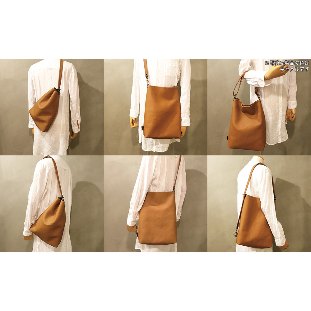 底を織り込むといった特殊な手法・構造により、他には無い新鮮なシルエットを実現。口元をシームレスにすることで、より洗練された上品な仕上がりに。パーツ1つの細部のバランスまで考え抜いています。手持ちや肩掛け、口元を絞りスリンバッグとしても持つことができます。実用的であり、存在感のある大人にふさわしい逸品です。