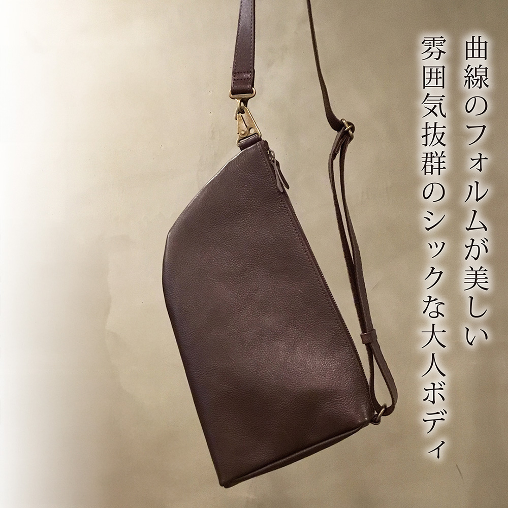 曲線のフォルムが美しいリバーシブルボディバッグ。